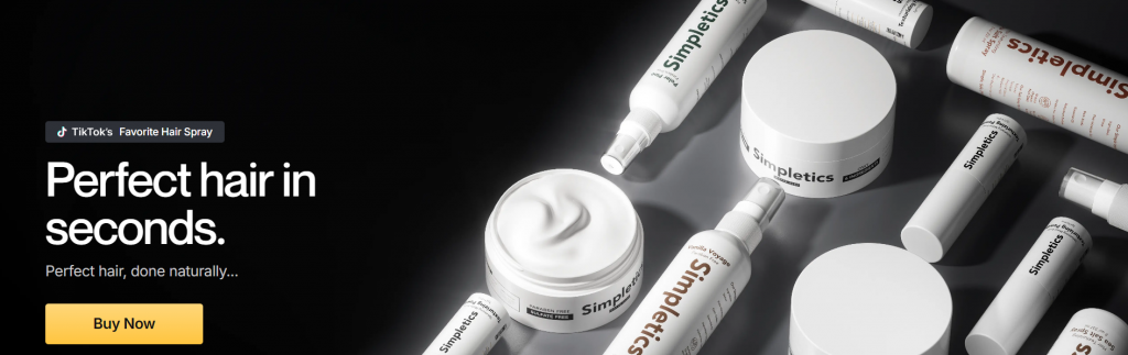 They highlight benefits such as “2 minutes to perfection”, “fluffy, beachy look”, “5 all-natural ingredients” (for the spray) etc. Simpletics